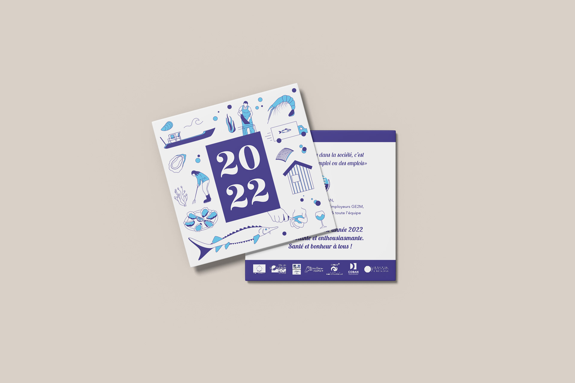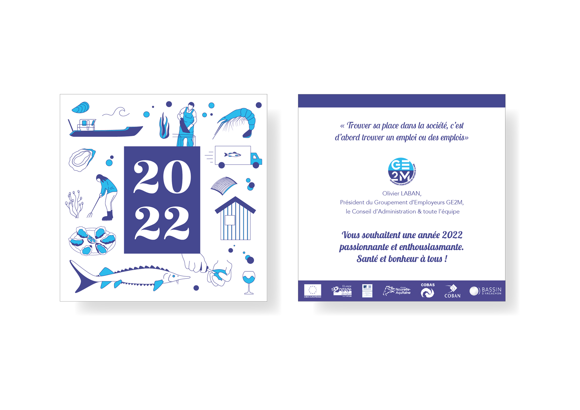 Le GE2M, Groupement d’Employeurs des Métiers de la Mer, a souhaité innover pour l’année 2022 en lançant une carte de vœux originale, représentative des métiers présents au sein de ce regroupement de professionnels.